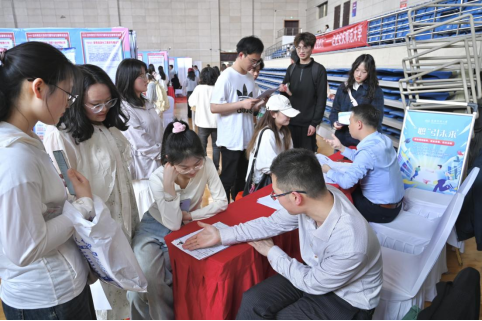 3月26日,学校在龙山校区体育馆举办2025届毕业生春季双选会。安徽省“职”引未来辅导员名师工作室在古天乐代言太阳集团城党委、学校大学生就业指导中心和“一站式”社区管理服务中心的指导和支持下,组织骨干力量“坐诊”就业咨询和简历诊断服务区,现场为学生提供一对一的职业规划、就业咨询和简历诊断等“把脉问诊”式服务。